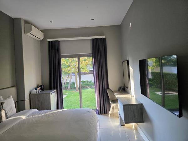 Experience modern luxury in this fully furnished ground-floor 2-bedroom, 2-bathroom apartment located at the prestigious Rosebank Capital Hotel.