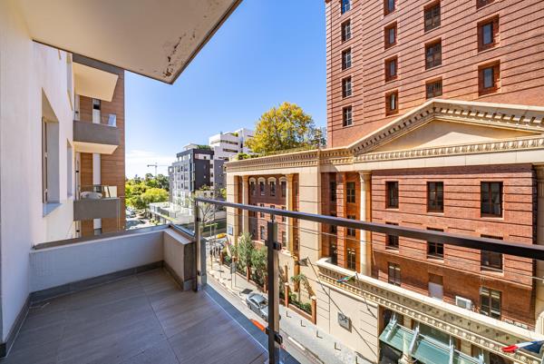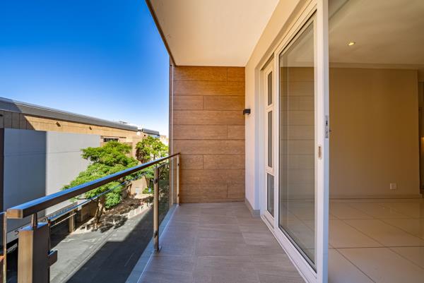 Private balcony offering sweeping vistas of Rosebank and Sandton, perfect for enjoying your morning coffee or evening sundowners.