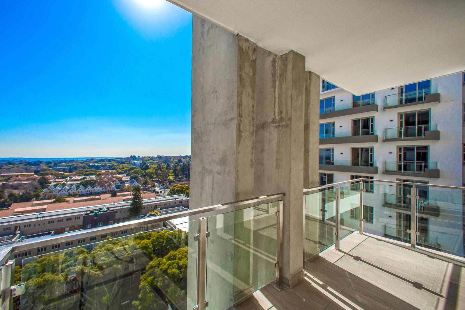 Upon entering, youre greeted by a beautifully tiled open-plan living area that extends seamlessly onto a private balcony, showcasing sweeping views of the Sandton skyline an ideal setting for entertaining or relaxing in style.