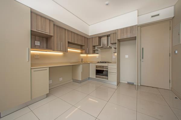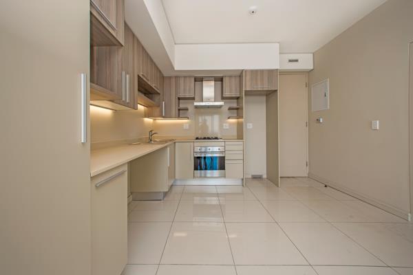 Upon entering, youre greeted by a beautifully tiled open-plan living area that extends seamlessly onto a private balcony, showcasing sweeping views of the Sandton skyline an ideal setting for entertaining or relaxing in style.