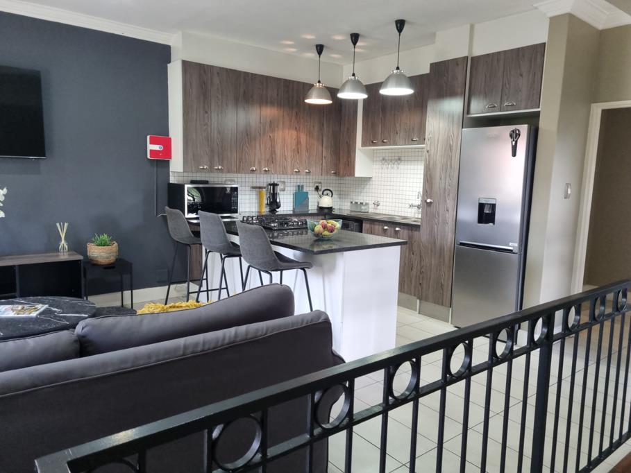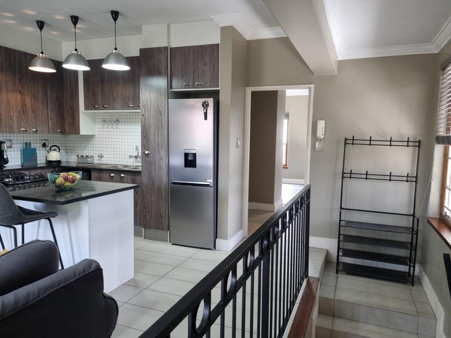 The lounge, dining and kitchen area is beautifully tiled, all open plan and offers a gorgeous view of the typical tall green leafy trees which Saxonwold is synonymous for, mostly surrounded by Jacaranda trees which are in full bloom between the months of September and November.