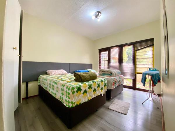 The apartment comes with 2 covered car ports. The comple does have a great clubhouse area with swimming pool, tennis court, outside braai facilities, tables and benches in the well maintained garden as well as a big clubhouse for inside entertainment.