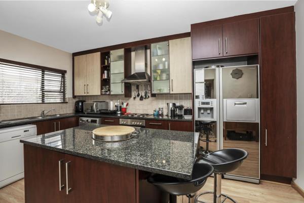 The open-plan kitchen features a stylish centre island that doubles as the perfect social spot. With ample cupboard space, granite countertops, room for two appliances, and a double-door fridge, its designed for both function and flair.