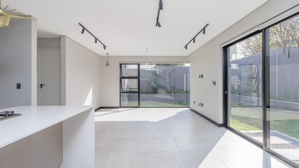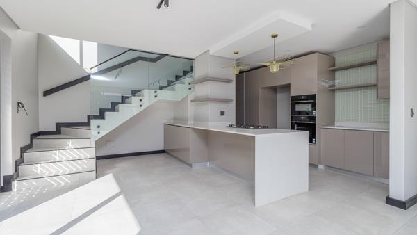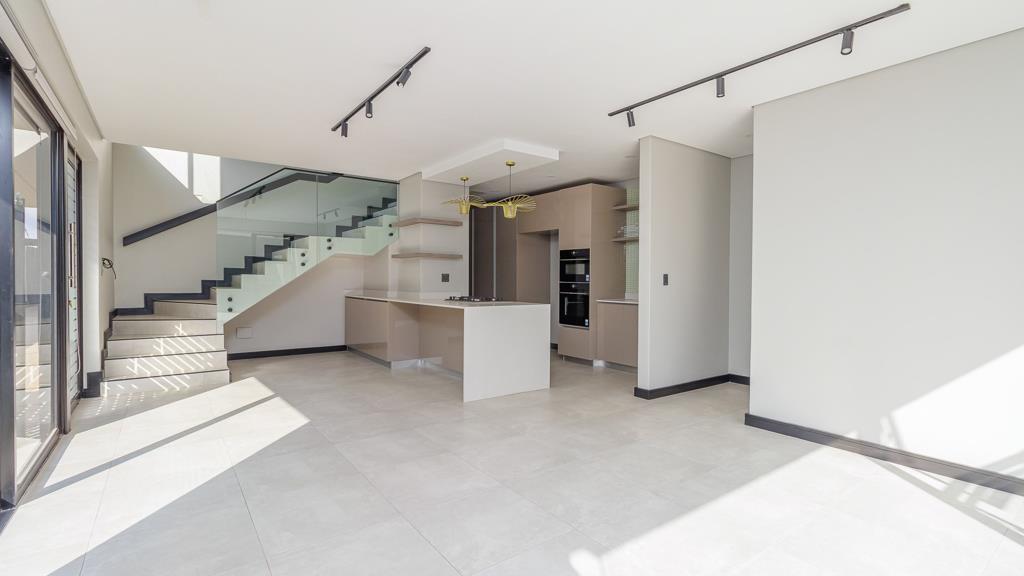 Available from the 15th of January 2026. This contemporary and elegant townhouse is situated in a small and exclusive complex. This architecturally designed property is bright and airy and creates effortless living for the young family or professionals on the go. The open-plan generous dining and lounge areas have stunning porcelain tiled floors throughout. From the reception area, via sliding doors, is a private garden. The chic kitchen with an island has a scullery with a double sink and direct access to the double garage. The property is brand new and has all essential conveniences installed: 6 solar panels, backup inverter, water backup, modern glossy kitchen with Bosch gas hob, high-speed fibre, blinds already installed, garden service included, frameless windows in the lounge and main bedroom for uninterrupted views.