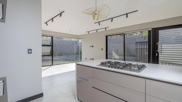 Available from the 1st of October 2024. This contemporary and elegant townhouse is situated in a small and exclusive complex. This architecturally designed property is bright and airy and creates effortless living for the young family or professionals on the go. The open-plan generous dining and lounge areas have stunning porcelain tiled floors throughout. From the reception area, via sliding doors, is a private garden. The chic kitchen with an island has a scullery with a double sink and direct access to the double garage. The property is brand new and has all essential conveniences installed: 6 solar panels, backup inverter, water backup, modern glossy kitchen with Bosch gas hob, high-speed fibre, blinds already installed, garden service included, frameless windows in the lounge and main bedroom for uninterrupted views.