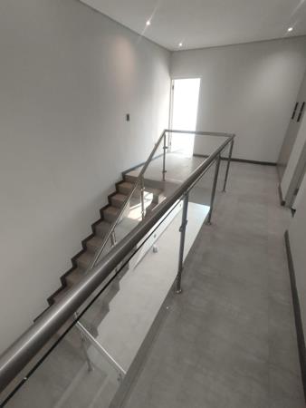 Each of the three bedrooms is en-suite, offering privacy and comfort, with some featuring direct access to private balconies that provide serene green views. The main bathroom is elegantly appointed with a double vanity and modern fixtures. With a generous floor size of 258 sqm on a 350 sqm erf, this property is perfectly suited for professionals or families seeking a spacious and contemporary lifestyle. Enjoy outdoor relaxation on the private patio and in the manageable garden space.