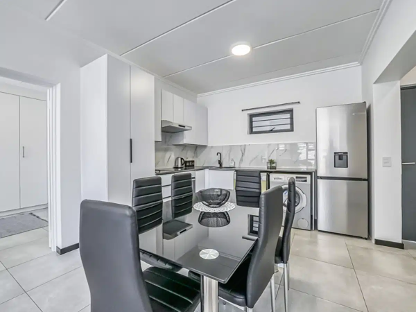 This apartment is equipped with modern amenities, including a fully integrated inverter, Fibre-to-the-home connectivity, and a pre-paid electricity meter for ease of use. The complex itself offers an array of facilities and conveniences, such as a clubhouse with a swimming pool and braai facilities, co-working spaces with Wi-Fi access, a laundry area, and beautifully maintained indigenous gardens.