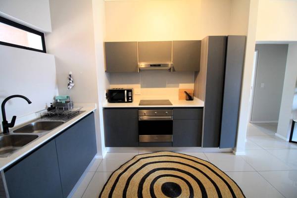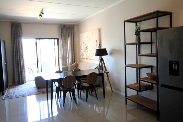 Discover your perfect home in this stunning two-bedroom, two-bathroom fully furnished first-floor apartment, designed for modern living and comfort. Step inside to find a spacious open-plan kitchen and living area that seamlessly blends style and functionality. The contemporary kitchen is equipped with high-end appliances and ample storage, making it a joy to cook and entertain. The living area is bathed in natural light, creating a warm and inviting atmosphere that flows effortlessly onto your private balcony, perfect for enjoying morning coffee or evening Sundowners.