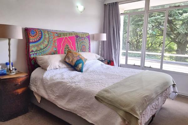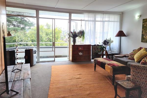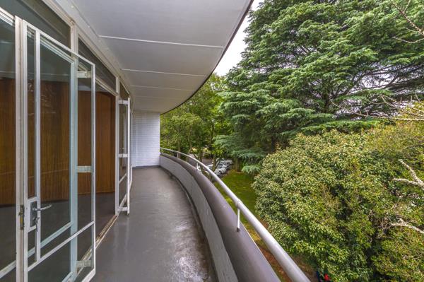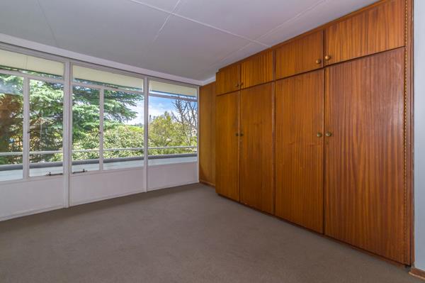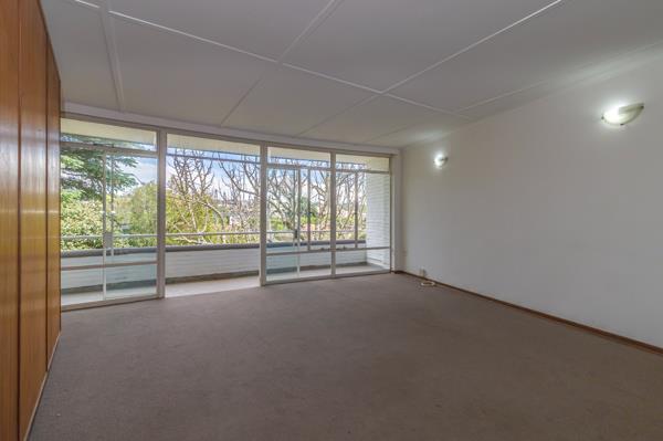 This top-floor large one-bedroomed apartment is located in the iconic Bryanston Crescent complex. On the corner of Hobart and Westhertford Roads, it overlooks the neighbourhood past the power sub-station.