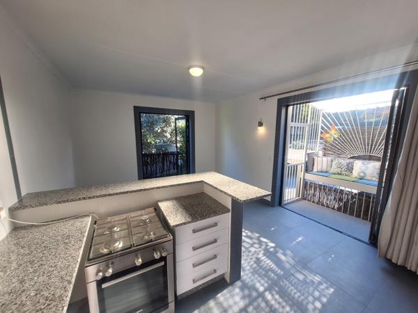 This modern , renovated and sunny spacious 2 bedroom flat on private property surrounded by trees is fully tiled. It has 2 bedrooms and 1 bathroom , a large kitchen ,scullery and pantry . There is space for a double door fridge and the washing machine connection is in the pantry. The flat also has it ' s own private entrance and double carport. The private entrance is