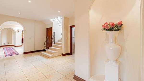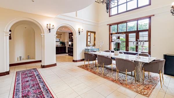 Experience the perfect blend of timeless elegance and modern comfort in this exceptional Bryanston home, positioned in one of the areas most coveted and secure addresses. From the striking double-volume entrance to the serene garden outlooks, this impeccably maintained property is designed for sophisticated living and effortless entertaining.