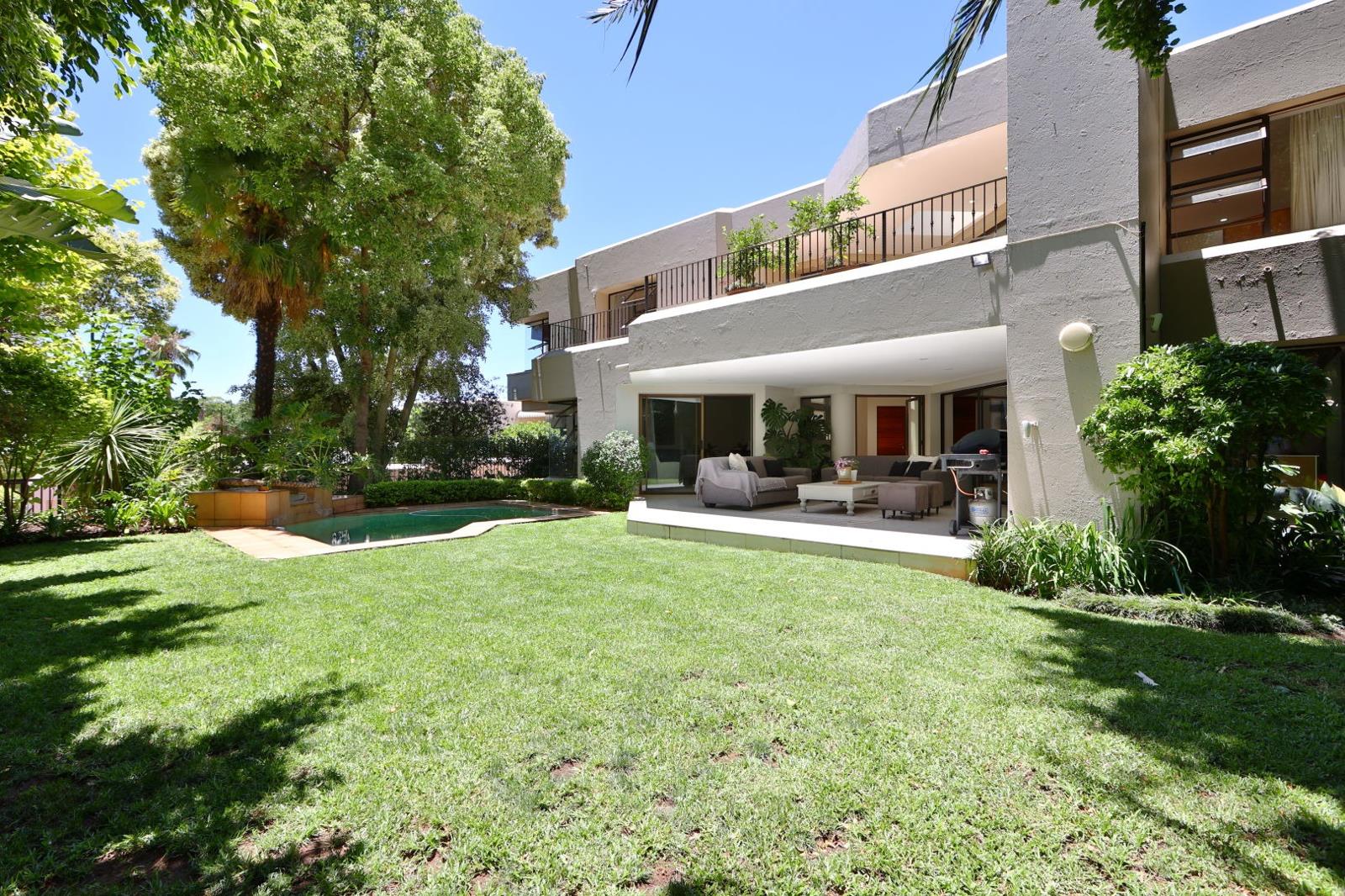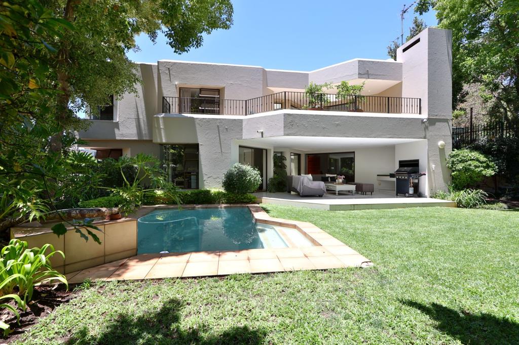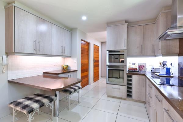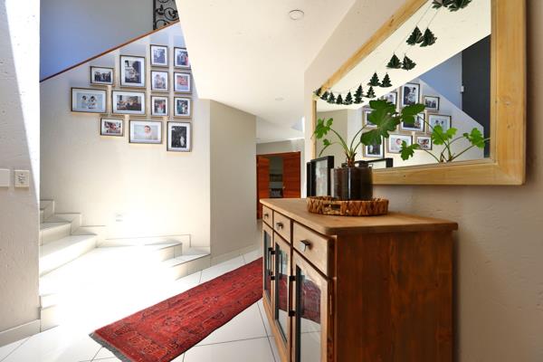 Step outside to a private oasis on the 895 sqm erf. An expansive covered patio, perfect for outdoor entertaining, seamlessly connects to a lush garden and refreshing swimming pool. Multiple balconies and a dedicated braai room enhance entertainment. Security is paramount within this complex, featuring an access gate, alarm system, electric fencing, and a security post. Pets are welcome, and practical amenities include air conditioning, staff quarters, and three garages with four total parking spaces. Occupation 1 January 2026.