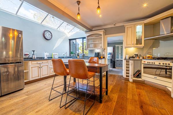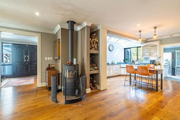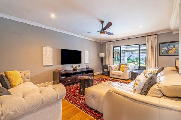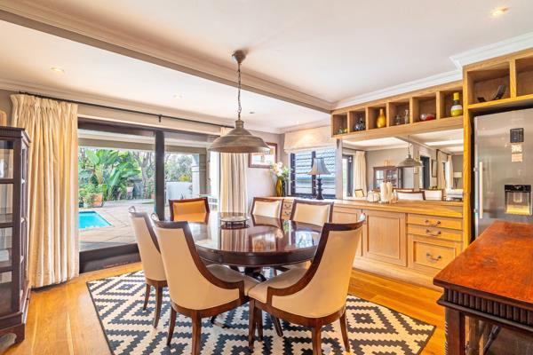 An entertainers dream with open plan living areas, solid oak flooring onto covered patio and heated pool. Lush garden with water features and koi pond. Chefs kitchen with separate pantry and scullery, opulent main suite with dressing room, and luxurious bathroom. 3 further bedrooms 2 ensuites . Lock down security in bedroom area. Fabulous guest suite / cottage / work from home with full kitchen and lounge / playroom or gym. Study with gas fireplace. Excellent staff suite, garaging and workshop area, Solar Geyser