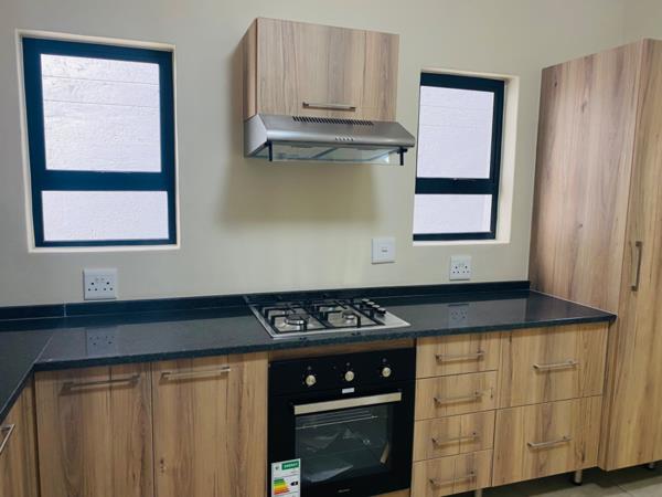This beautifully designed 3 bedroom, 2 bathroom duplex apartment is tiled throughout and offers an open plan kitchen with granite tops and an energy efficient gas hob, ample cupboards and space for 2 appliances and a double door fridge. The spacious lounge leads onto a covered patio into your spacious garden.