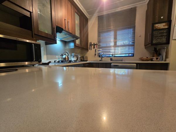 This cosy inviting furnished 3-bedroom ground floor apartment in Edenburg offers a comfortable and convenient lifestyle. It features a beautiful garden, a fully equipped kitchen with a gas hob, and an open-plan dining and lounge area. The master bedroom faces north, providing ample natural light, and has an en suite bathroom with a bath and overhead shower. The second bedroom can serve as an office or guest room and includes a second bathroom with a shower. The third bedroom has a built-in mirror, a queen bed, and a TV port.