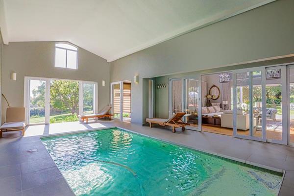 Two storage areas adjacent to the covered entertainment spot offer even more functionality. Transitioning from the kitchen, a spacious open-plan dining area awaits, showcasing stunning wooden floors and a double-volume ceiling that illuminates the home with warmth and brightness. Picture yourself enjoying cozy winter evenings by the fireplace in the dining area, while the exquisite sunken lounge with doors that seamlessly open up to the generously sized heated indoor pool and covered entertainment area creates the perfect setting for entertaining and relaxation. This home truly has it all!