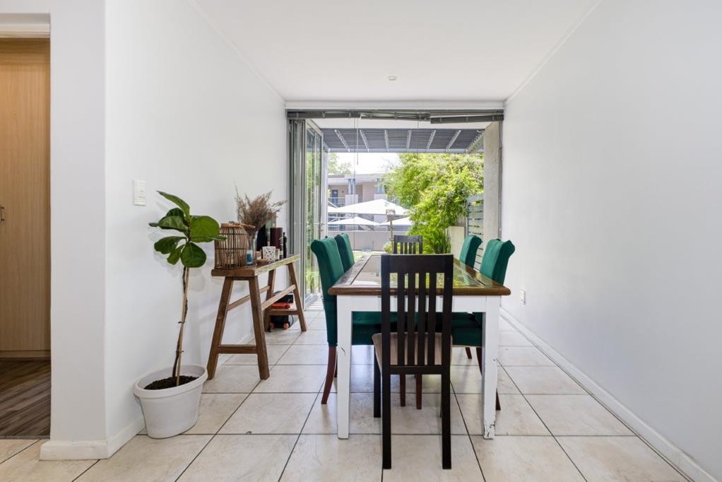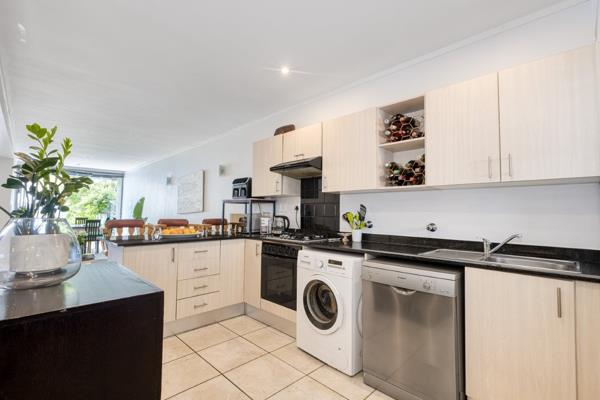 Modern garden apartment with fiber available. Secure complex with 24hr security guard, remote control and programmed cell entry. Plenty visitors parking and lovely swimming pool. Close to Hyde Park, Sandton, Randburg, Bryanston and Rosebank. Entrance leading to open plan kitchen, dining and lounge with glass folding doors opening to patio and large garden. Kitchen has ample cupboard space, granite tops, gas hob, electric oven, extractor, space for washing machine, dish washer and single fridge. Two bedrooms with laminated floors, built in cupboards and 2 bathrooms, both en suite. Main bedroom has sliding door to garden. Parking: 2 carports and visitors parking. Pets with permission.