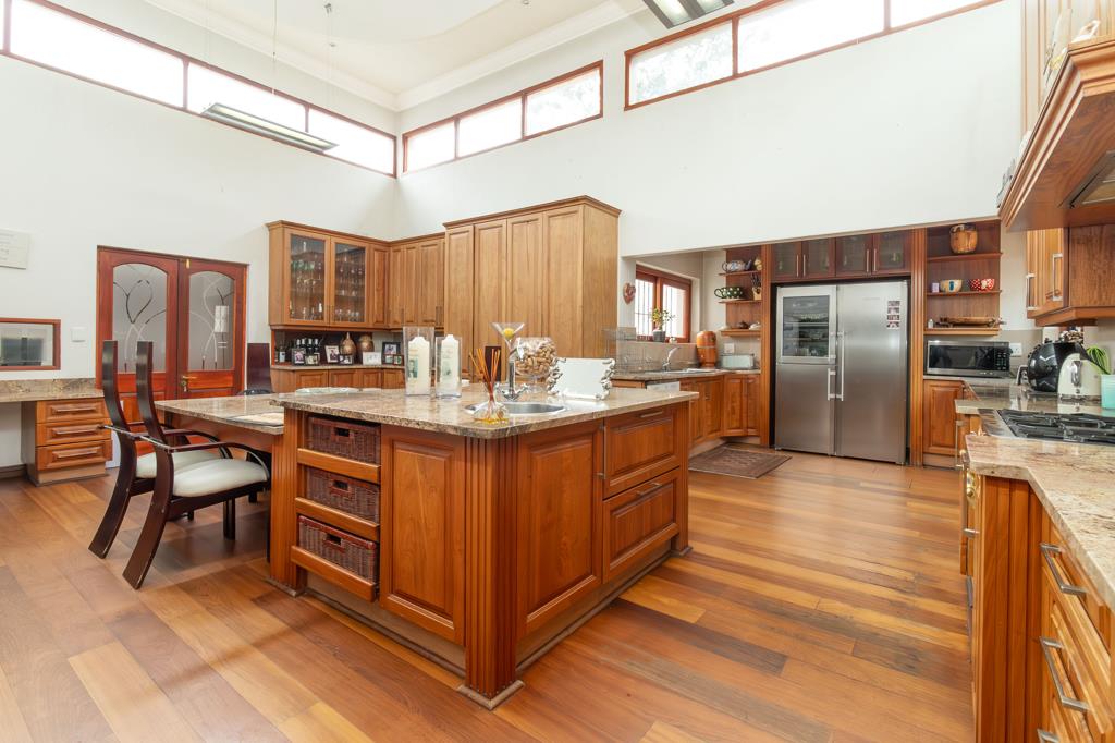 - A gourmet chefs kitchen with a large centre island, ample cupboard storage, and prep space, complemented by a separate scullery/laundry
