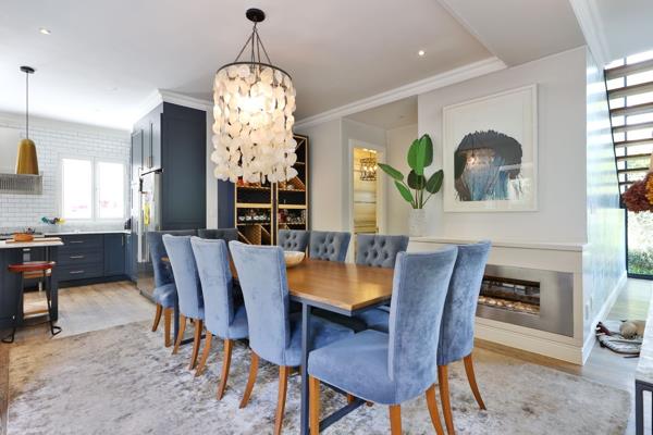 The gourmet kitchen is a culinary showpiece, featuring dark shaker style cabinetry, pristine marble countertops, a generous island and professional grade stainless steel appliances. A well appointed scullery enhances functionality and ensures effortless entertaining.