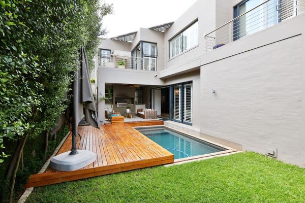 Enjoy the South African climate from multiple balconies, a private patio and a wooden deck overlooking a refreshing plunge pool, perfect for intimate gatherings or relaxed afternoons. An integrated outdoor entertainment area with a built in BBQ invites effortless alfresco living.