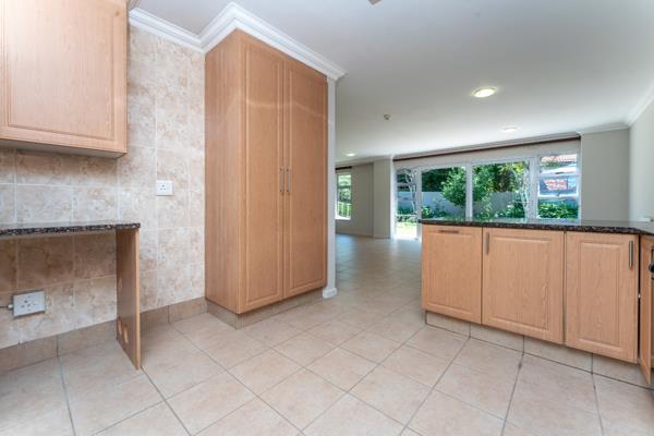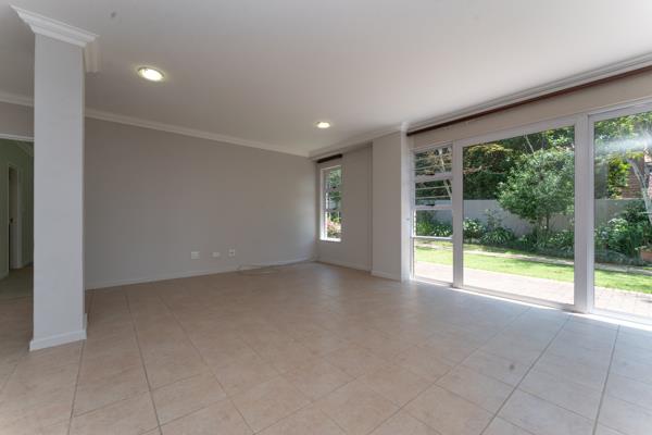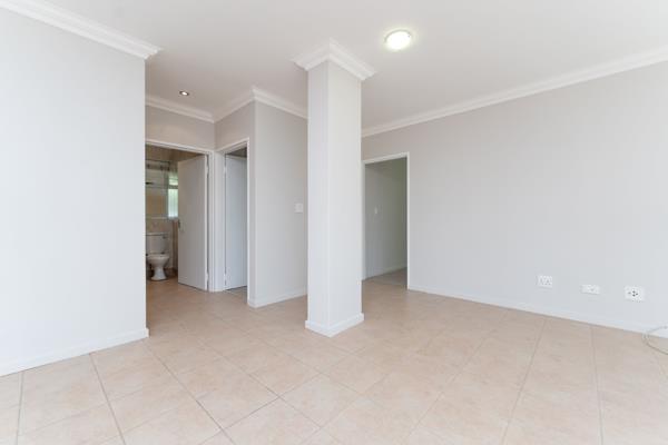 The main entrance opens into a spacious, light filled open plan living area that combines the kitchen, dining, and lounge spaces seamlessly. The kitchen is thoughtfully designed with ample cupboard space, a double sink, and room for two under counter appliances.