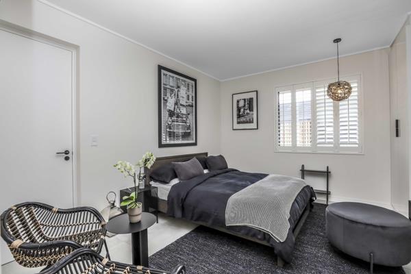This beautifully curated 65sqm home boasts an open-plan kitchen fitted with top-of-the-range finishes and SMEG appliances, including an integrated refrigerator, washing machine and dishwasher. Premium crockery, cutlery and glassware complete the space, making it fully equipped and ready for effortless living. The dining and lounge area is tastefully furnished, enhanced by elegant French blinds and designed for both relaxation and entertaining. Two private balconies provide serene views over Hyde Parkperfect for morning coffee or evening sundowners.