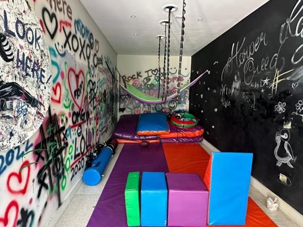 The pyjama lounge leads to an exterior walk way taking you to a little haven of a covered patio and rooftop garden