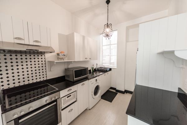 Modern with open plan dinning area, lounge, study and bedroom area with built-in cupboards. Bathroom with extra sized shower and stylish kitchen equipped with a washing machine and fridge.