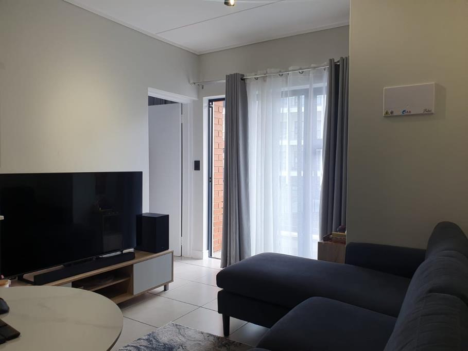 This modern 1-bedroom offers an open-plan lounge that leads out to the balcony.