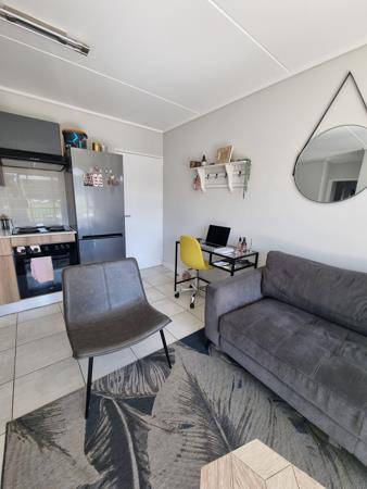 Moving out for the first time, then this north-facing, sunny (even in winter) first floor 1 bedroom apartment is a great place to start! Offering a classic lock up and go experience. The front door welcomes you into an open plan home with a kitchen that sports modern lighting and includes a double sink, Defy 600 electric counter top hob, under counter oven, extractor fan, white Caesarstone counter tops, mod built in cupboards and space for fridge and under-counter washing machine. Living area delights with 2 windows and a sliding door, and space for a work desk if you work from home. The bathroom is separate and spacious incorporating glass encased shower, bathtub, wall hung basin, toilet and large medicine cabinet with plenty of space for bathroom accessories.