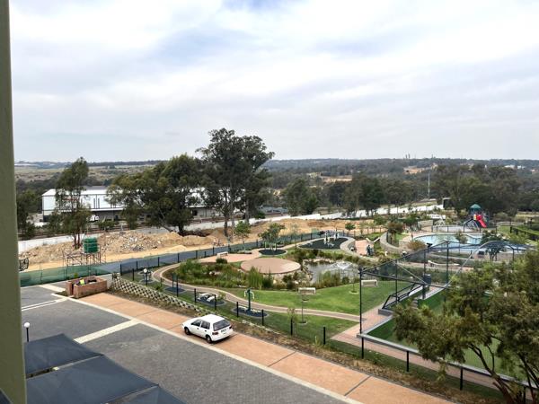 Stunning, south-west facing, third floor apartment, offers classic lock up and go experience. Front door welcomes you into spacious, open plan home. Kitchen sports modern lighting and includes, double zinc, Defy 600 electric countertop hob, under counter oven, extractor fan, white Caesarstone counter tops, mod built in cupboards. Lounge enjoys sliding door onto balcony offering gorgeous vista views over 6 star lifestyle center. Bedroom delivers with picture window, built in cupboards and plugs with USB ports. Full bathroom excites with modern rectangular bath, glass encased shower, wall hung basin, toilet and large medicine cabinet.