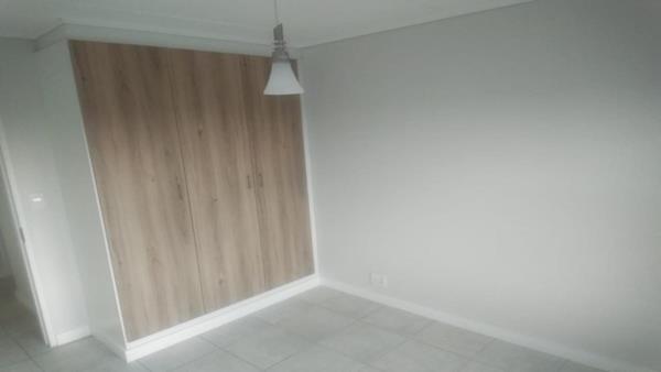 Built-in cupboards, covered patio leading into an enclosed garden.