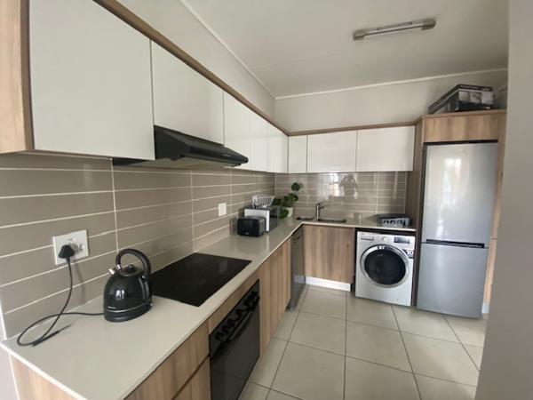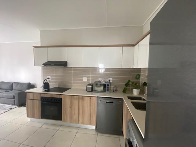 Open-plan kitchen with ample cupboard space, fitted with modern appliances