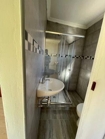 Bachelor pad to let with bathroom, shower, kitchen with cupboards, stove and oven
