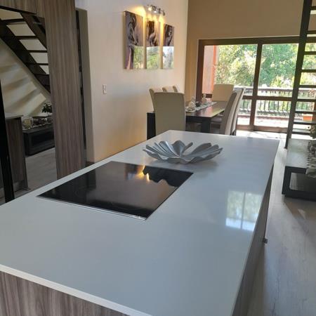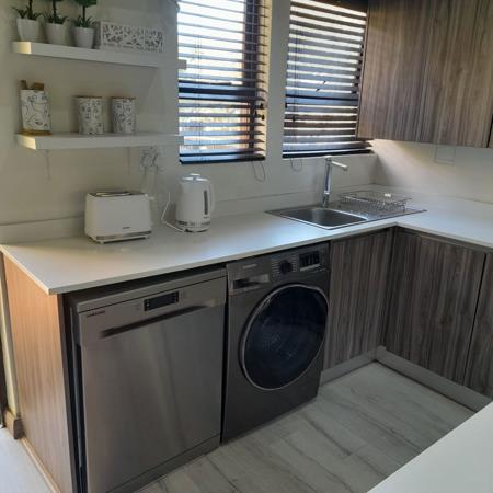 Open plan kitchen with all appliances. Samsung appliances, washing machine and dishwasher, with stove top to cook like a chef!