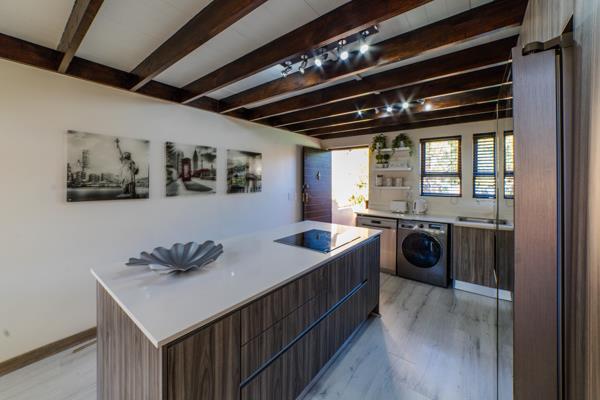 Open plan kitchen with Samsung appliances, washing machine and dishwasher and centre island with stove top to cook like a chef!
