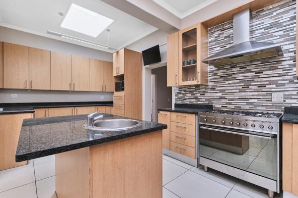 The chefs kitchen is the heart of the home, offering ample cabinetry, granite countertops, a centre island, a gas/electric stove and oven, and space for a double-door fridge. A separate scullery and pantry lead to the drying yard.