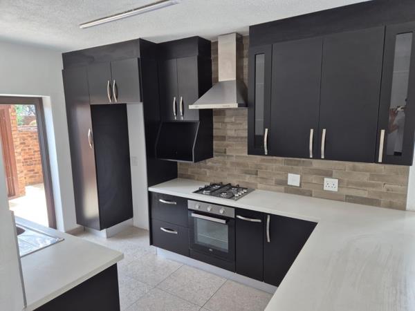 Discover modern living in this inviting 2-bedroom, 1.5-bathroom rental property located within a secure complex in Morningside, Sandton. Spanning 118 sqm of floor space on a 180 sqm erf, this home offers a well-designed open-plan layout. The contemporary kitchen is a highlight, featuring sleek dark cabinetry, light countertops, a tiled backsplash, and a gas hob with an integrated oven. An island provides additional counter space and serves as a breakfast bar, seamlessly connecting to the dining and lounge areas, all adorned with easy-to-maintain tiled flooring.