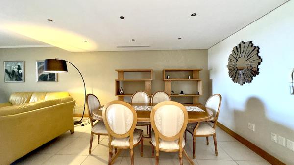 Open-Plan Lounge & Dining Room leading to a large covered patio with breath-taking Sandton skyline views