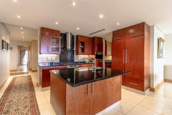 Every bedroom is en-suite, complete with heated towel rails, offering the ultimate in comfort and privacy. The spacious open plan living and dining areas have a central aircon and flow seamlessly from a designer kitchen with sleek finishes, three intergrated Miele appliances, and a separate scullery. From the lounge area you are greeted by the panoramic views stepping out onto a large, covered balcony with sweeping views over the landscaped gardens and sparkling pool below.