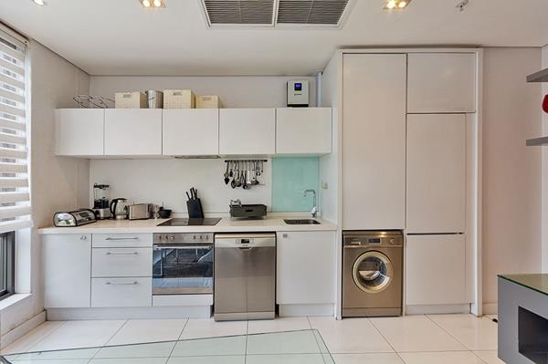 Modern Kitchen: Fully equipped with appliances, cutlery, crockery, and integrated fridge