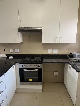 The open-plan kitchen and living area is well appointed with ample cupboard space, a large countertop that can accommodate bar stools and enough space for a decent size couch and coffee table. The private patio looks out onto a large garden.