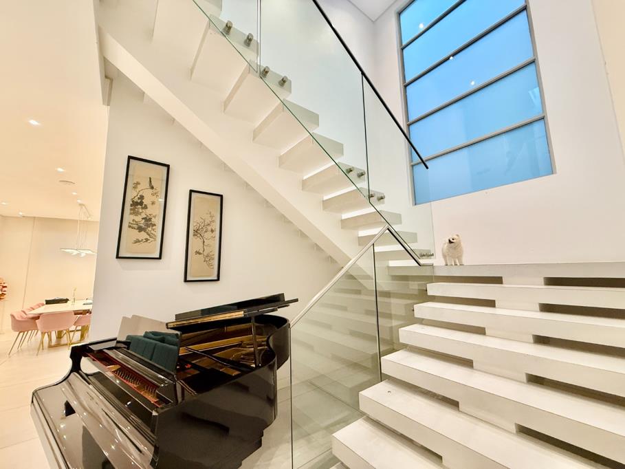 The ground floor also features a private study fitted with custom-built cabinetry ideal for a modern work-from-home setup along with a guest cloakroom, double automated garage, and an oversized storeroom that reflect the homes thoughtful practicality.