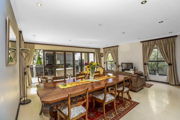 Step into expansive open-plan living and dining areas, seamlessly flowing from the chic, contemporary kitchen to a spacious covered patio complete with a built-in gas braai perfect for effortless entertaining. The manicured garden wraps the home in lush greenery, adding to its serene and picturesque charm.