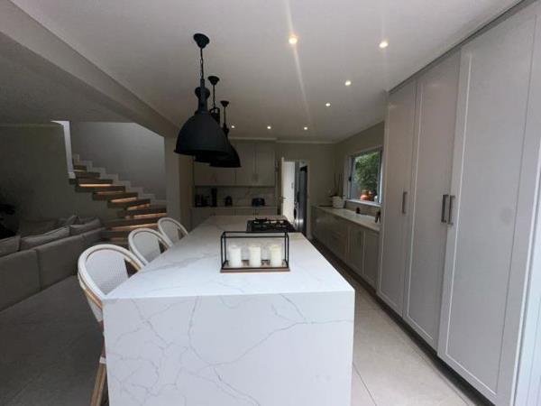 The kitchen offers integrated appliances with a separate scullery and slate counter tops