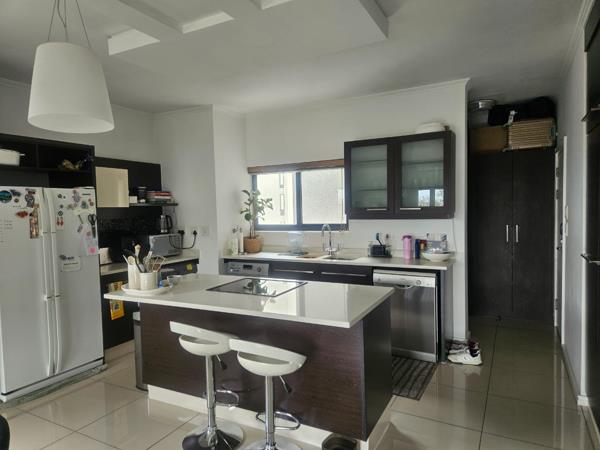 Step into a modern kitchen featuring rich dark chocolate cupboards, a sleek island with an induction stove, a double-door fridge, washing machine, and dishwasher perfect for effortless living. The open-plan layout flows seamlessly into the dining area, complete with a six-seater dining set, and a spacious lounge that opens onto a large balcony. Enjoy serene views of a lush green suburban garden a peaceful escape in the city.