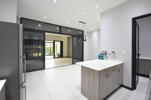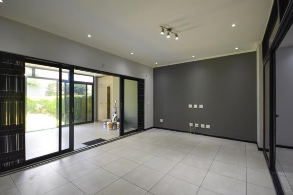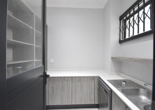 The open-plan living and dining area provides a seamless flow, perfect for modern living. The enclosed all-season patio, complete with air-conditioning, ample built-in cupboards, and stacking sliding doors leading to the generous garden, can easily be used as an additional living room, study, or entertainment space. Garden services are included as an added bonus.