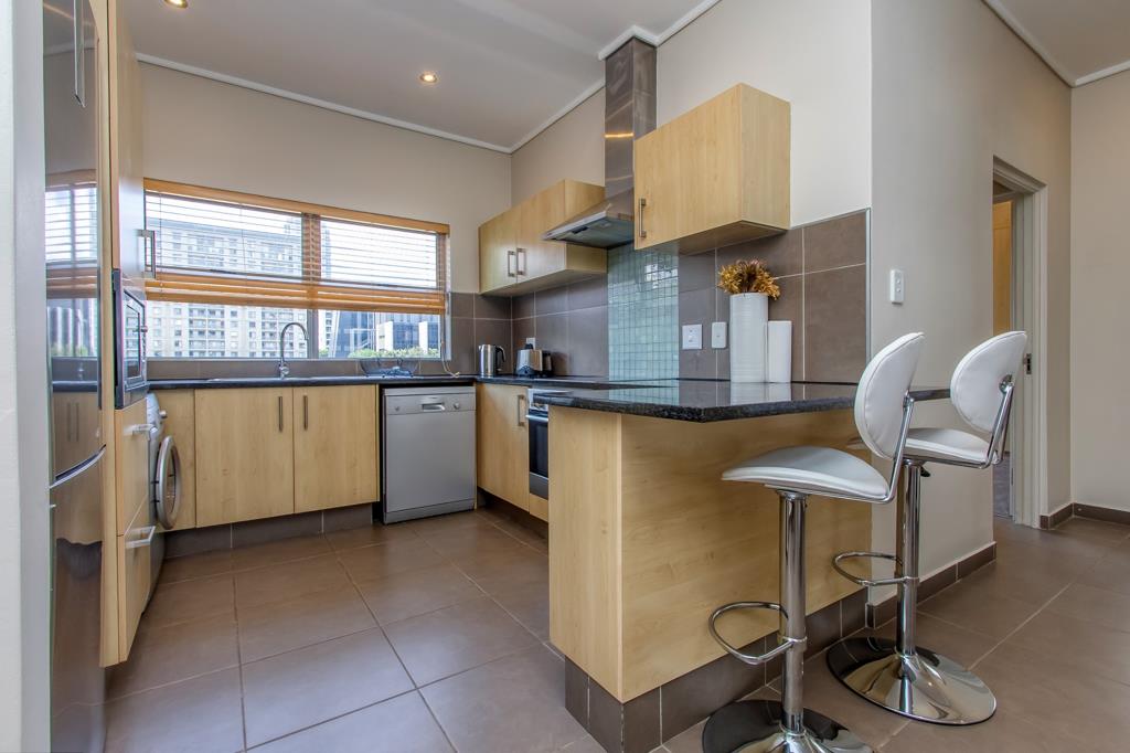 Perfect lock up and go. Secure, modern furnished apartment ideal for corporates. Offering well appointed kitchen with breakfast counter and all modern appliances including ovenstove, microwave oven, double door fridge, dishwasher, clothes washer, and tumble dryer. Open plan Loungedining room with glass sliders opening out onto covered balcony.
