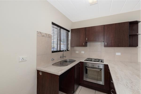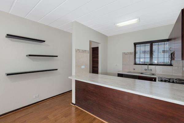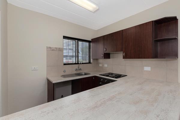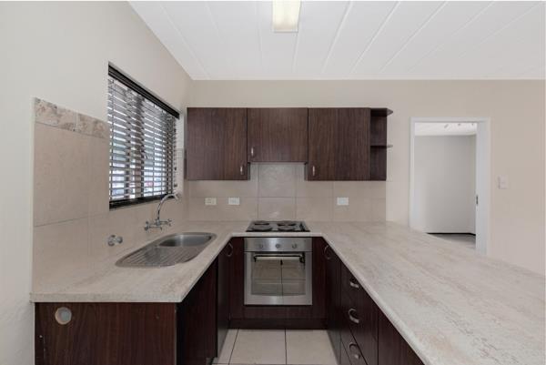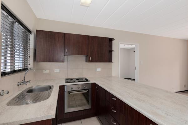 Kitchen with ample cupboards and counter space, space for a washing machine