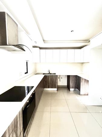 Bulkhead ceilings , beautiful lighting and layout in living area , corner open plan kitchen area fitted for double door fridge space and 2 appliances .